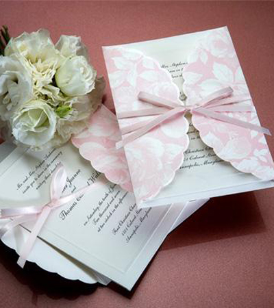 仍然有很多新人喜爱选用赤色作为婚礼的主题色彩,假如想在成婚喜帖上寻求立异,那么这款带有传统花朵底纹原料的成婚喜帖必定让你满足,传统又不失大方、构思新颖,新鲜感十足。
