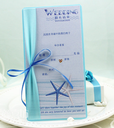 跟着婚礼主题的多元化,成婚喜帖也相对应地变得层出不穷,海洋主题的成婚喜帖清新高雅,用小海星装修的成婚喜帖,构思十足,心爱满分。