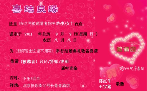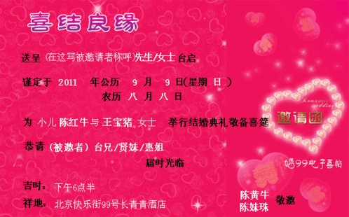 关于那些非传统的新式成婚请柬的写法,通常没有太多讲究,只需能明白精确地表达,不搞乱目标和混