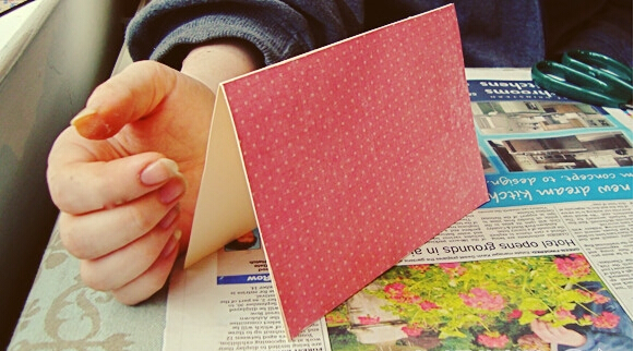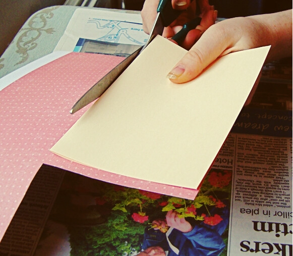 挑一张你喜欢的漂亮纸剪成和卡纸同样大小的,准备做封面。