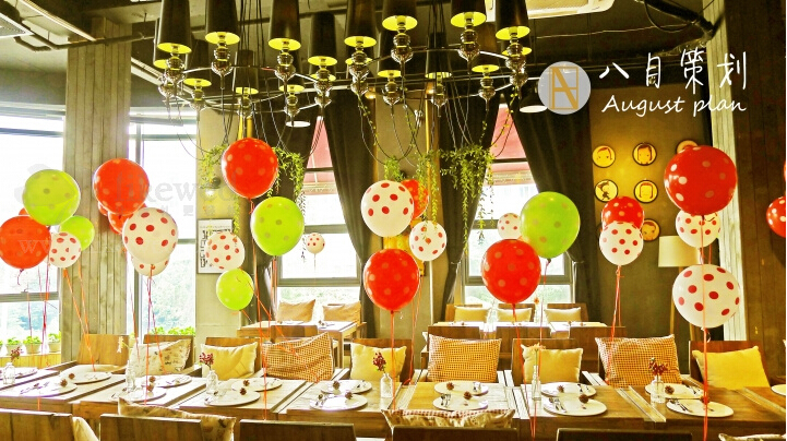 八月策划 主色调:白 红 绿 场地:连云港维拉西餐厅 波点气球有没有很俏皮,蘑菇花朵还有绿藤带你走入公主的童话世界。白天的西餐厅的采光不是很好,所以森系的主色调变成了白色和红色,绿色成为配色。小公主是个带酒窝的小女孩,笑起来特别甜,希望给她一个最好的10周岁派对。